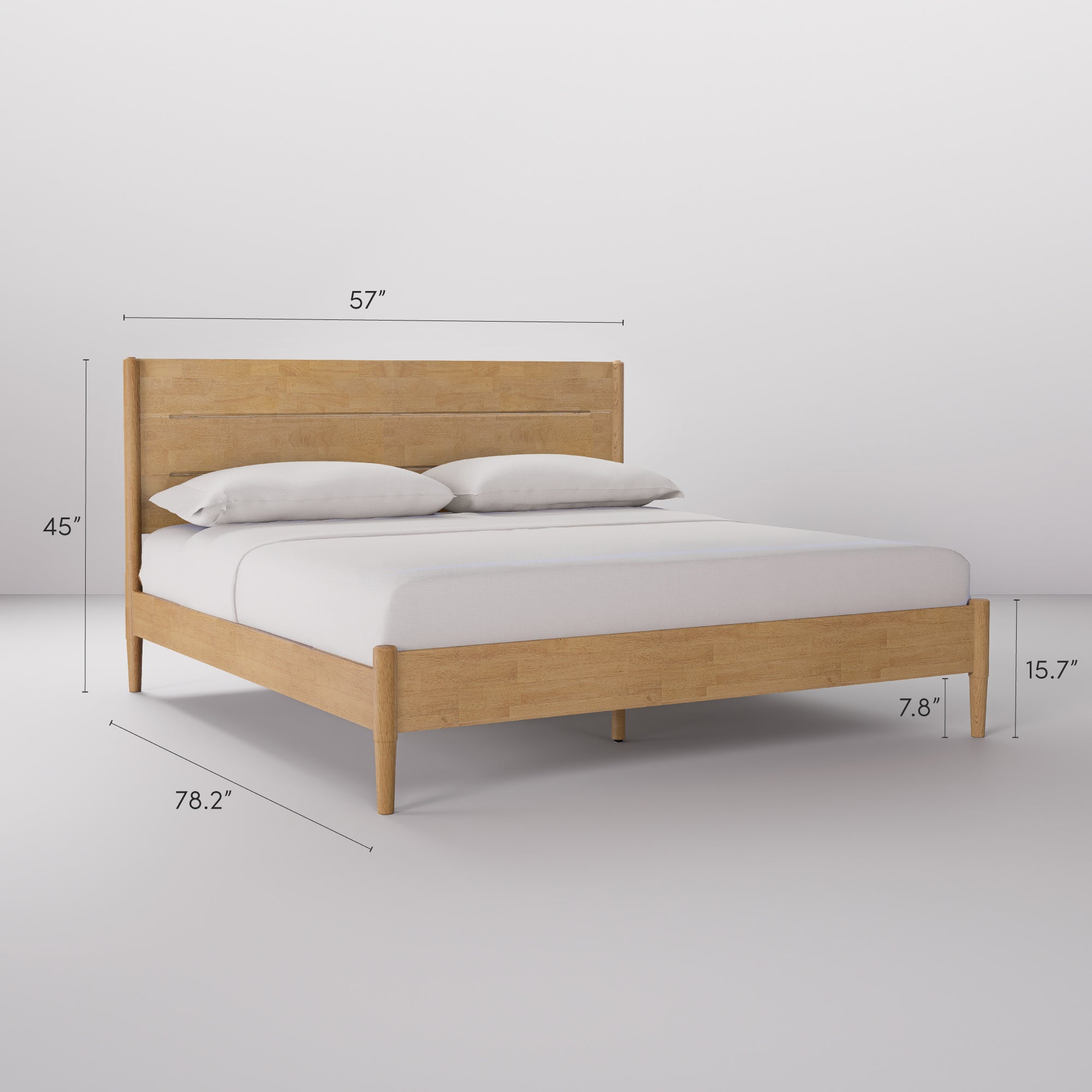 - MCM wooden bed frame full dimension: 78.2"L x 57"W x 45"H ((Headboard height 45" and Foot Leg 15.7"). Total capacity 800 lbs.