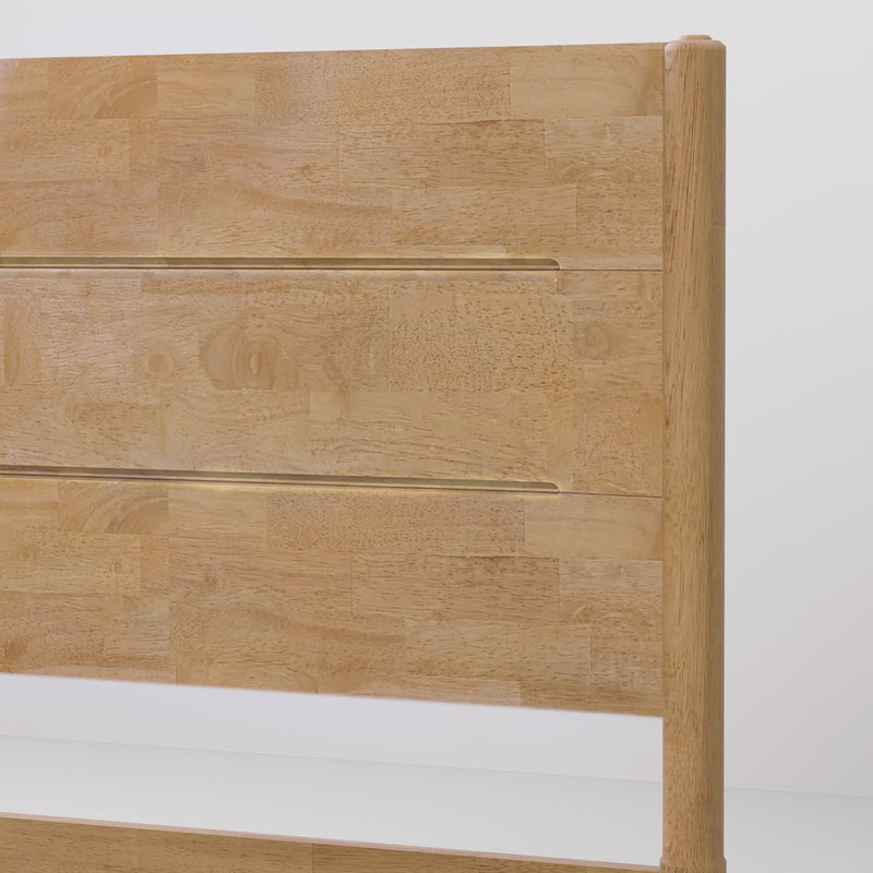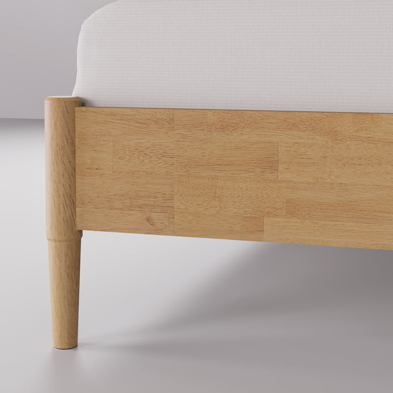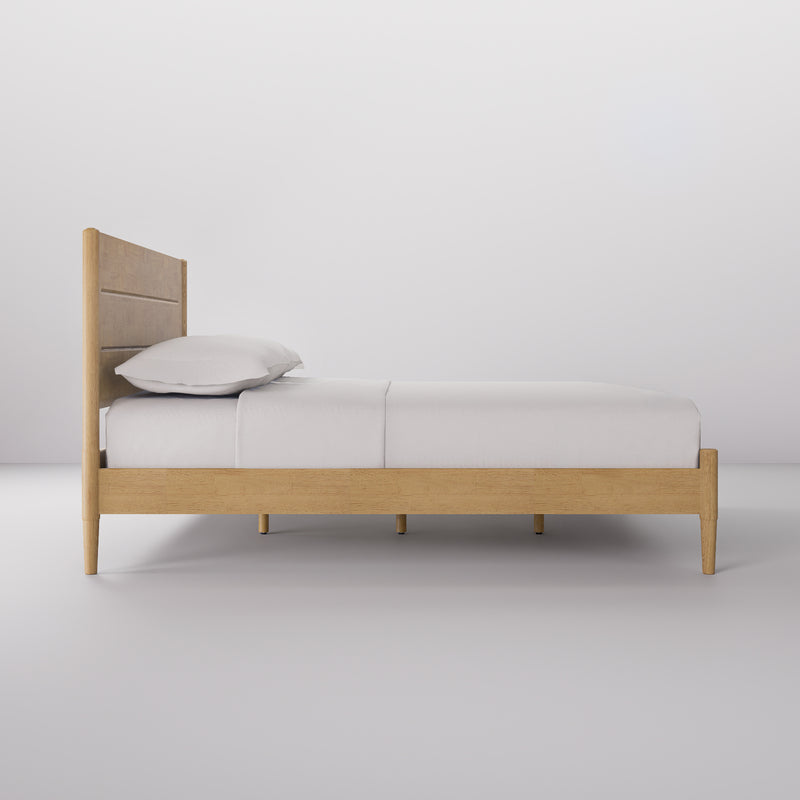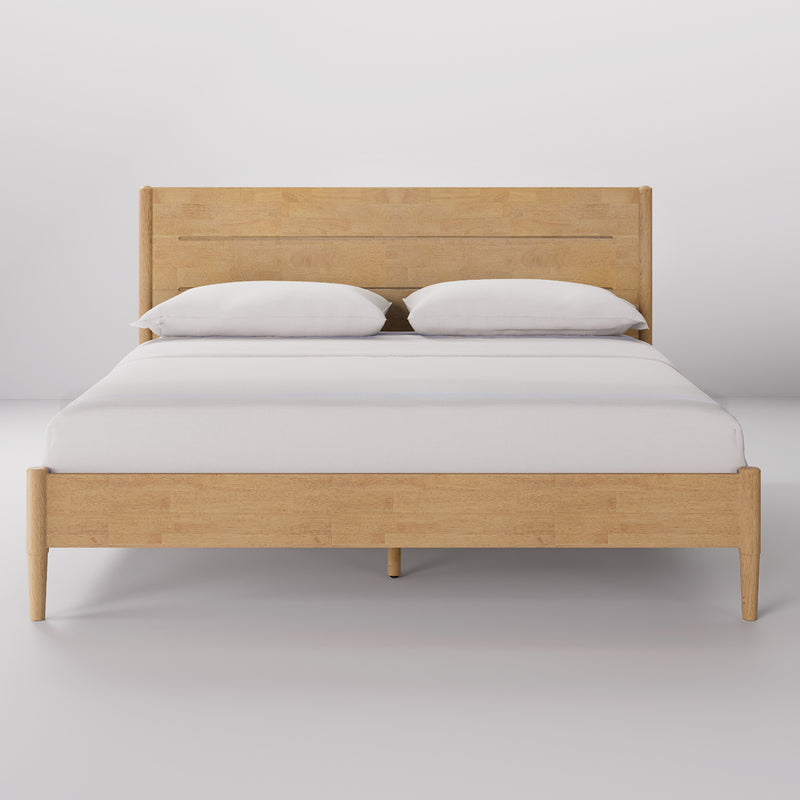 Apollo Mid-Century Modern Bed Frame with Headboard, Solid Wood, Light Oak Finish