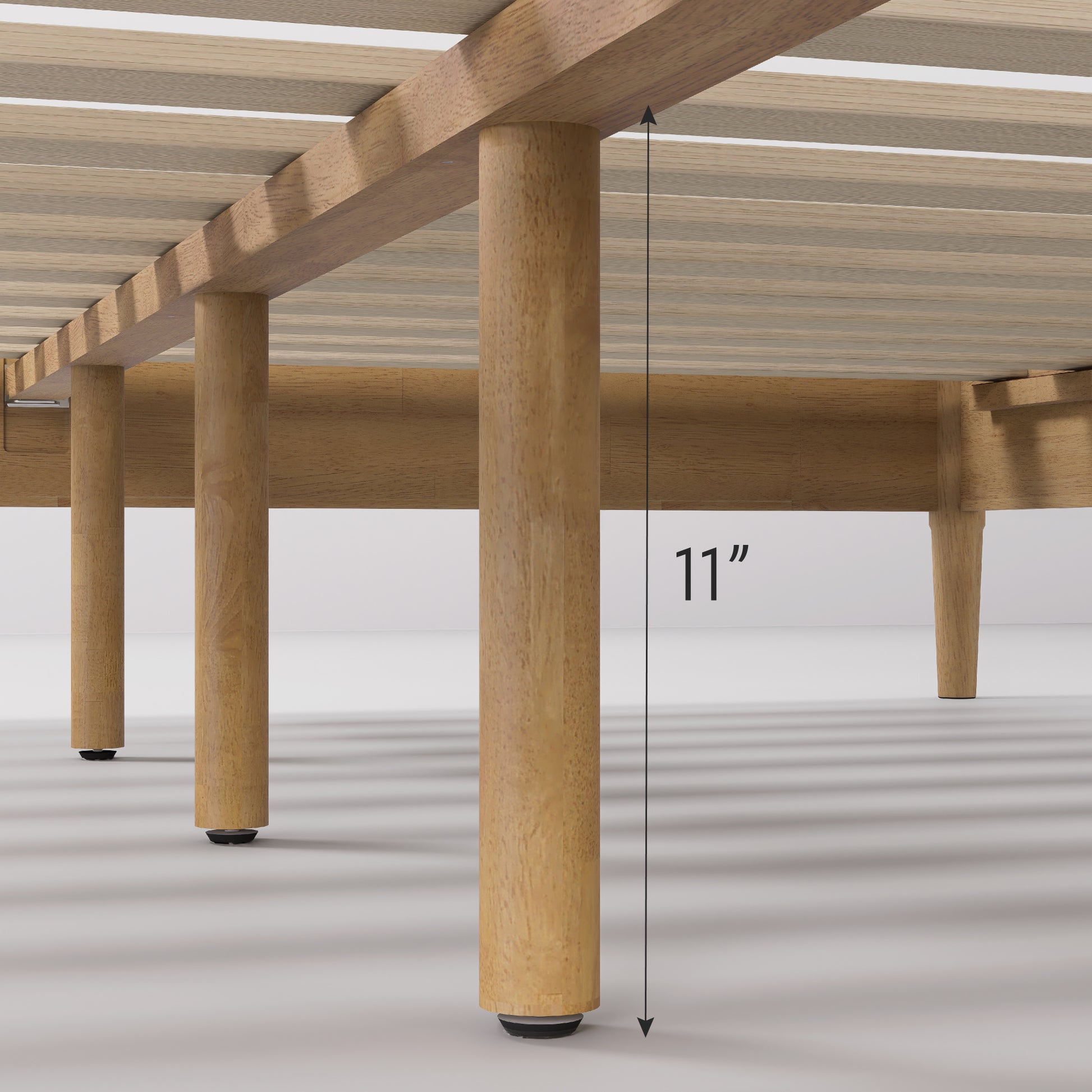 - Tapered Spindle Legs: These iconic 1950s-inspired tapered legs offer an elevated bed frame look, creating an airy feel and providing ample under-bed storage space for small space living.