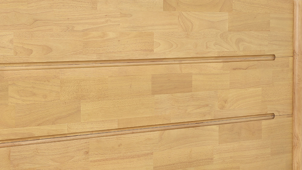 The headboard isn't just a flat board; it features precision-milled horizontal grooves.