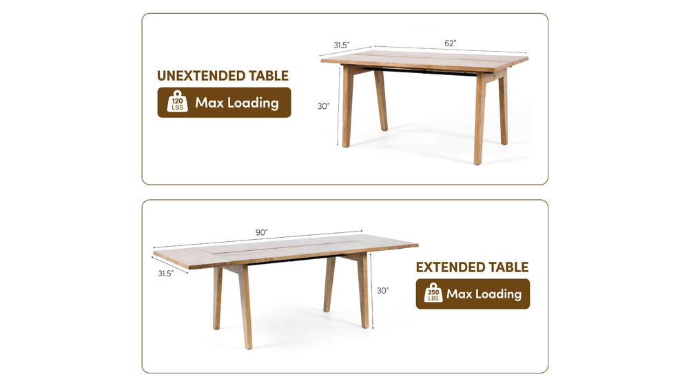 62" to 90" Extendable Dining Table
