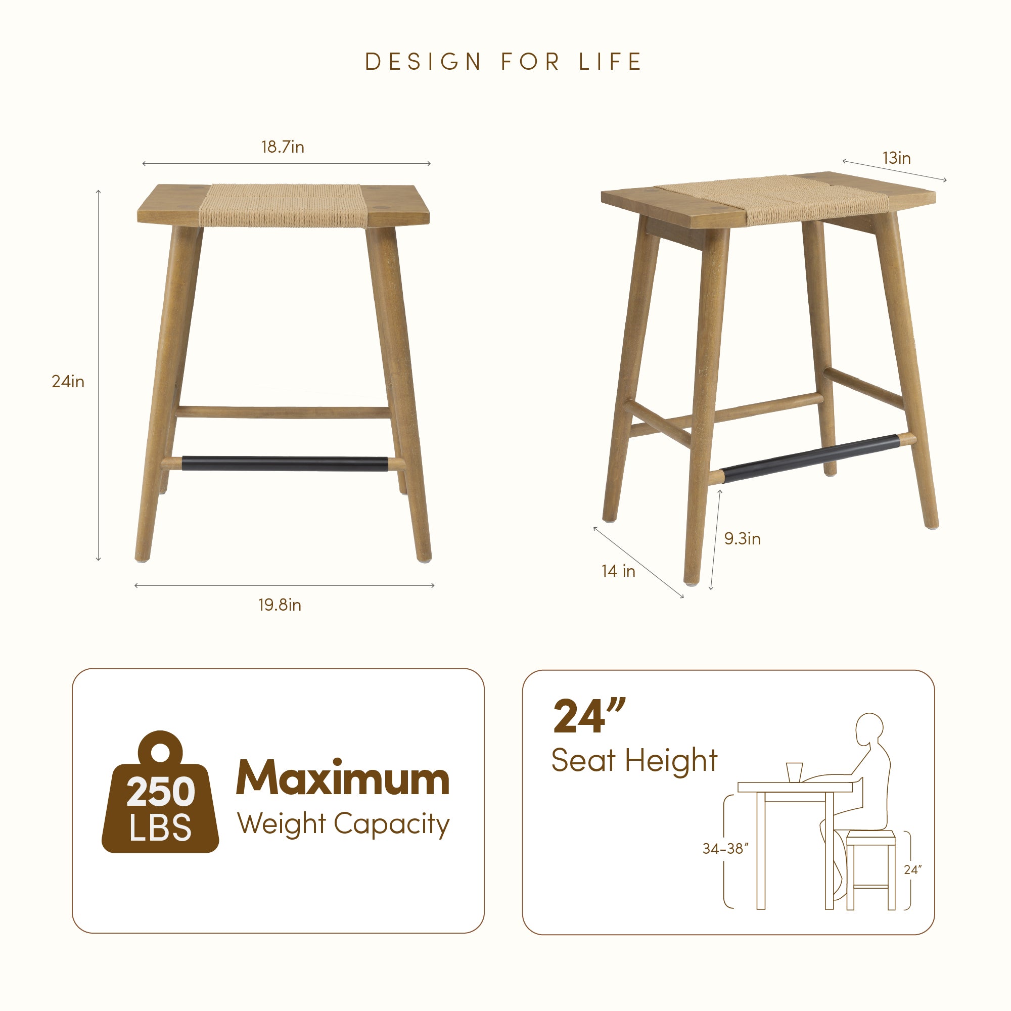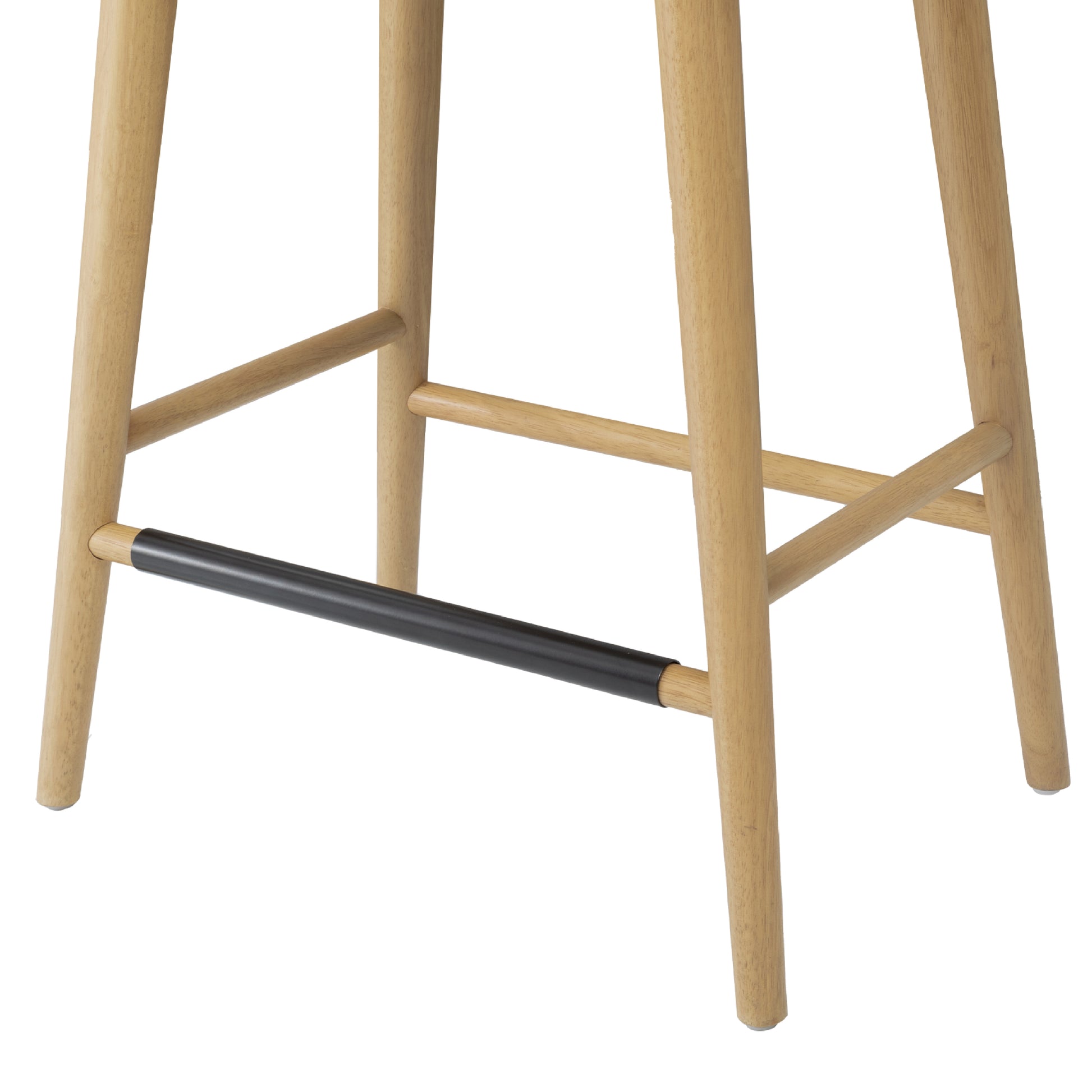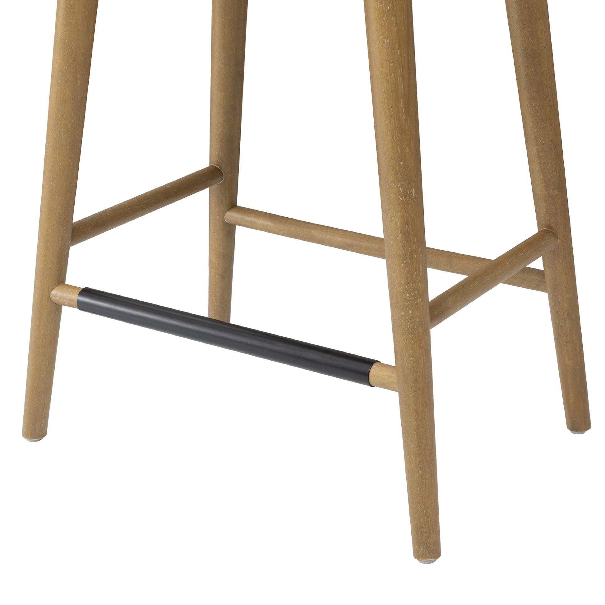 Keep your kitchen guest-ready with our mixed-material Barker bar stools. Sit comfortable for hours on its removable padded saddle seat that's made of easy-to-wipe-clean faux leather and held up by solid wood legs and perfectly-placed foot rests. Plus, it features a metal frame over the footrest to avoid any scratches. Assemble these in no time at all with our easy-to-follow instructions and included hardware. At 24" tall, these refined stools are perfect for tucking under your kitchen counter when not in use. We have no doubt that this bar stool is going to be a dinner party favorite.