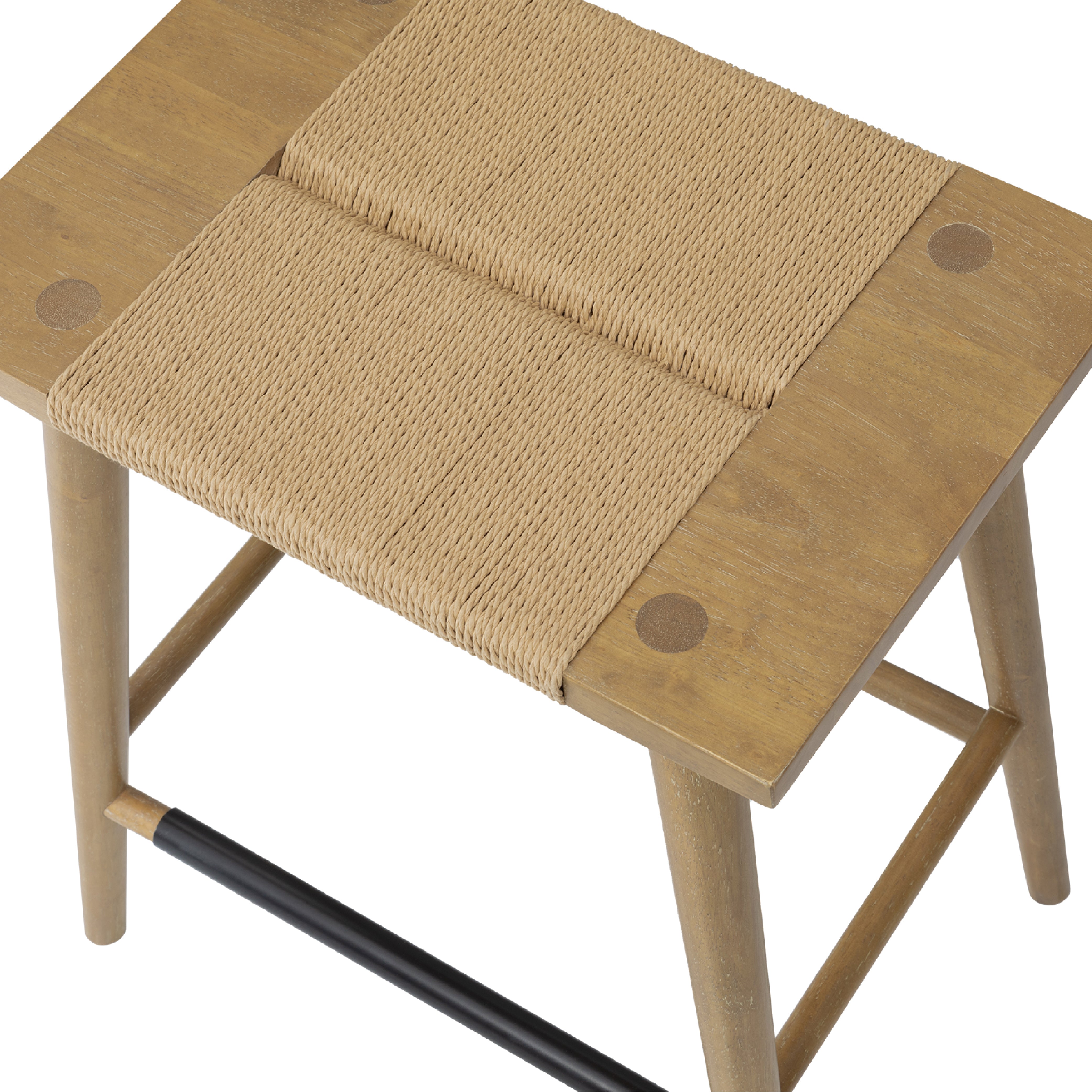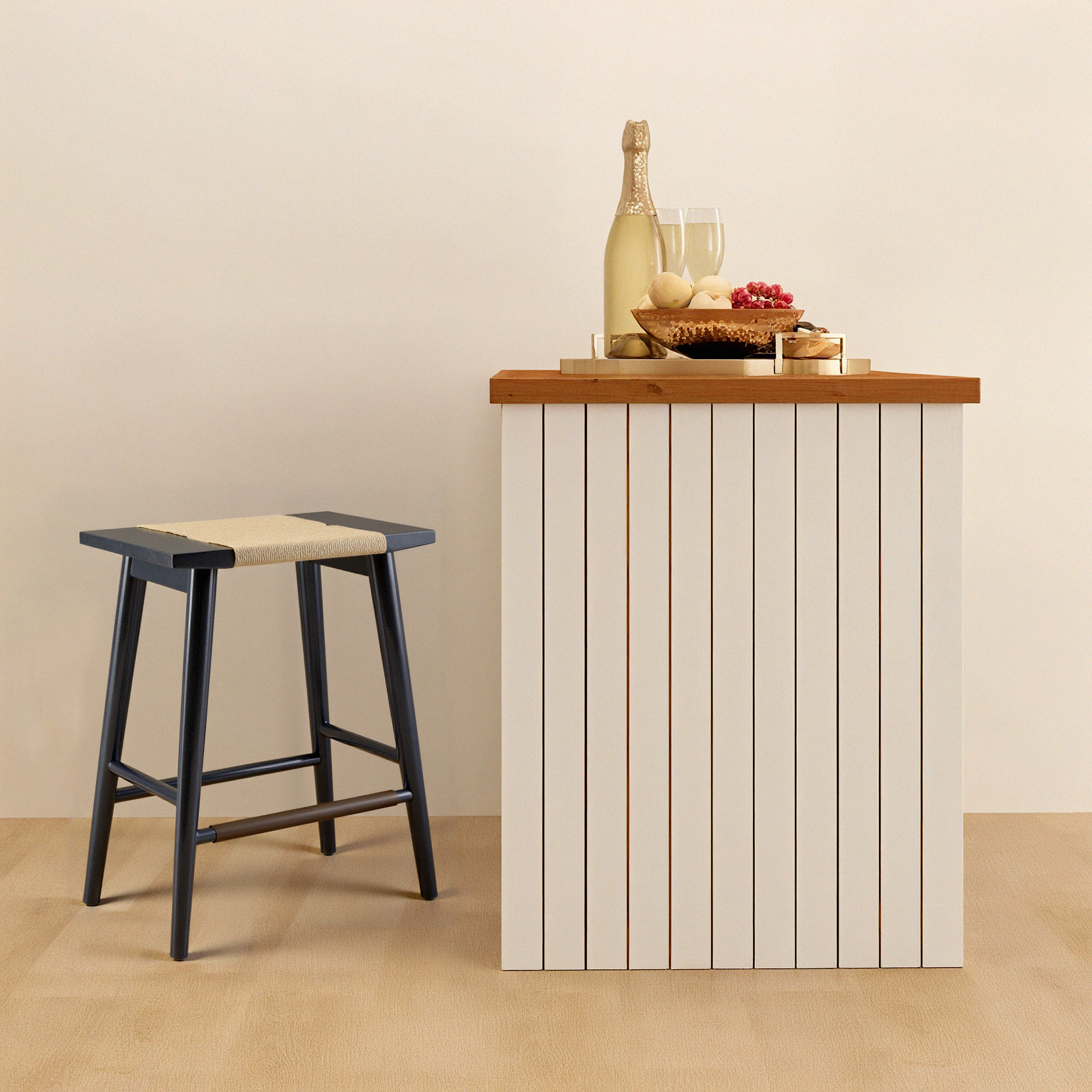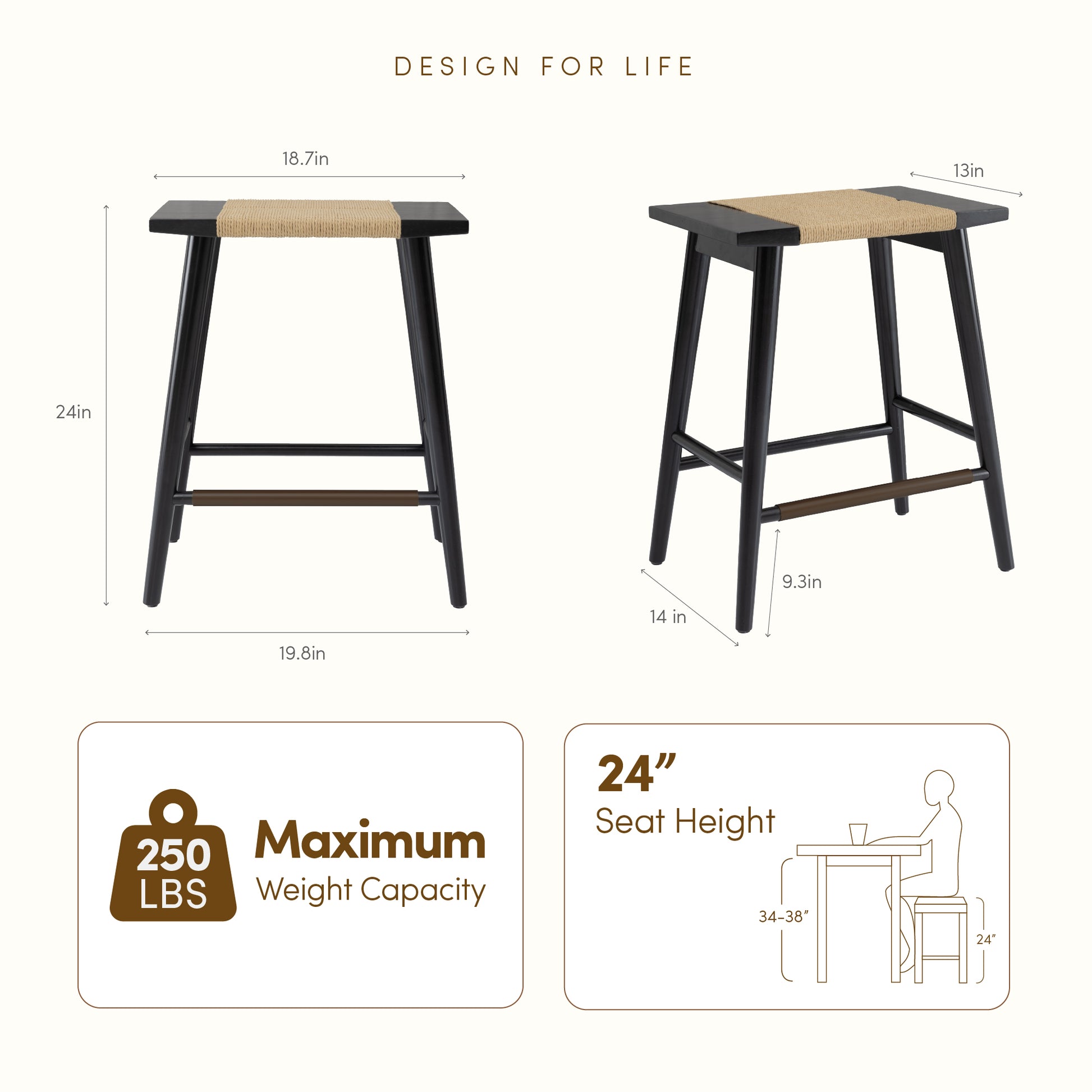 Keep your kitchen guest-ready with our mixed-material Barker bar stools. Sit comfortable for hours on its removable padded saddle seat that's made of easy-to-wipe-clean faux leather and held up by solid wood legs and perfectly-placed foot rests. Plus, it features a metal frame over the footrest to avoid any scratches. Assemble these in no time at all with our easy-to-follow instructions and included hardware. At 24" tall, these refined stools are perfect for tucking under your kitchen counter when not in use. We have no doubt that this bar stool is going to be a dinner party favorite.