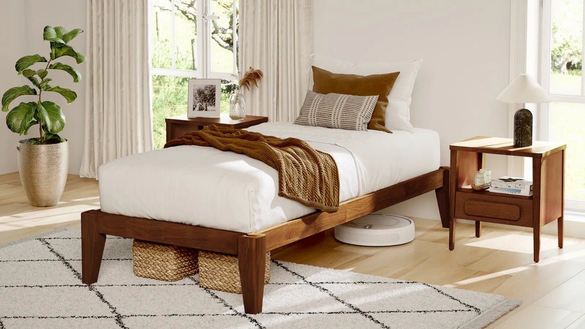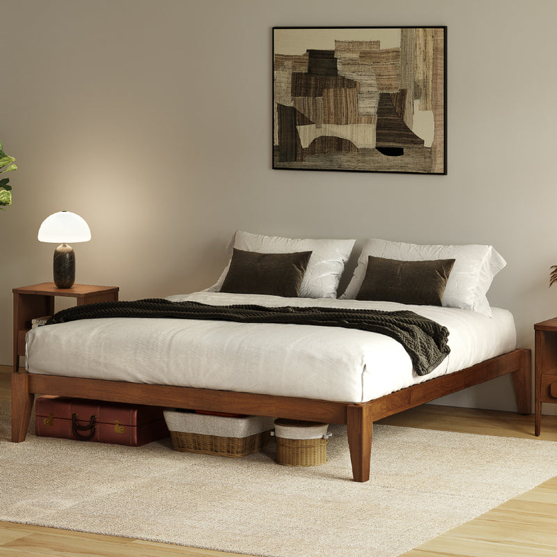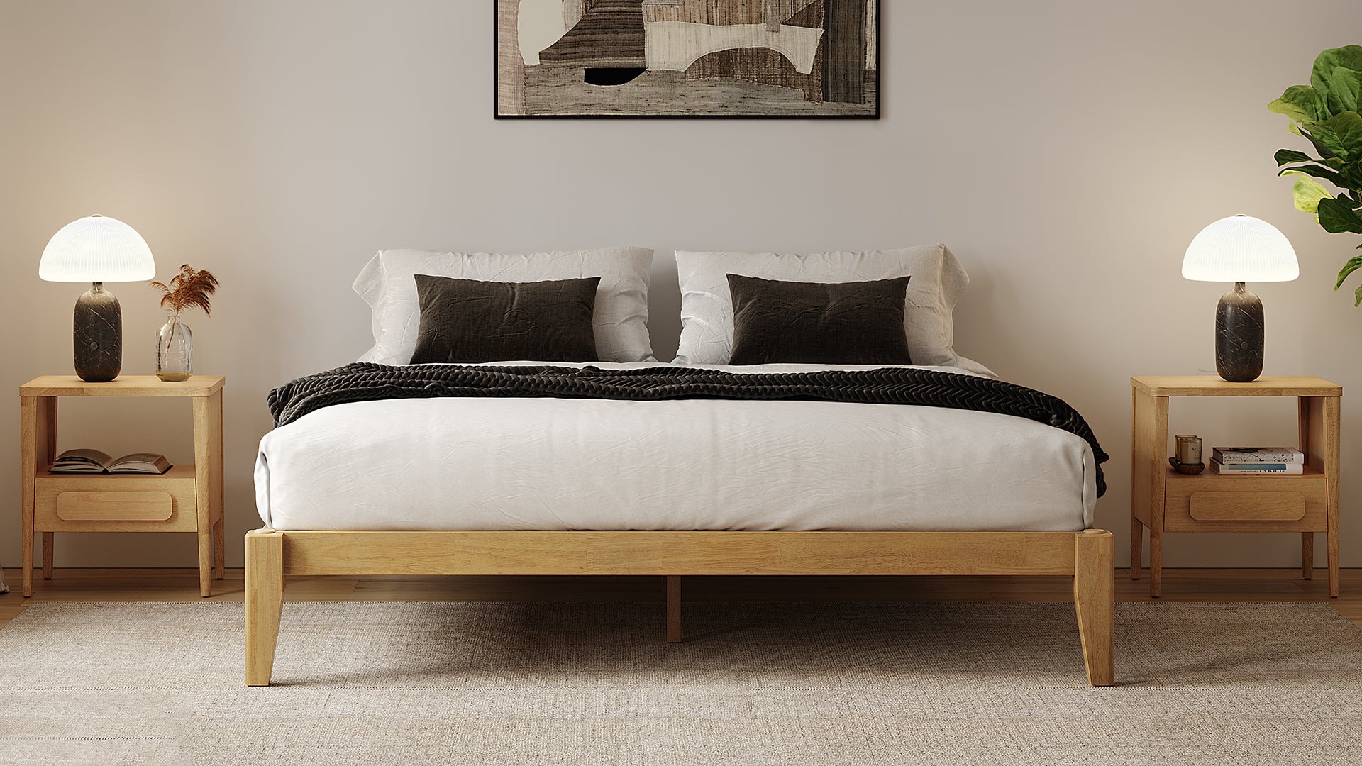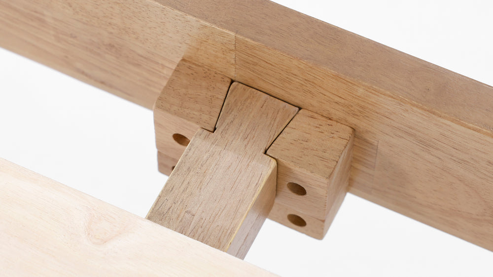 Inspired by the precision of Japanese joinery, the solid wood bed frame's innovative joint system creates a strong, seamless base that blends strength with simplicity.