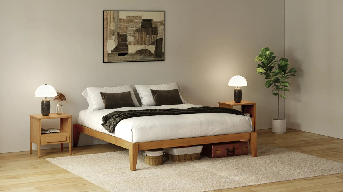 Inspired by the precision of Japanese joinery, the solid wood bed frame's innovative joint system creates a strong, seamless base that blends strength with simplicity.