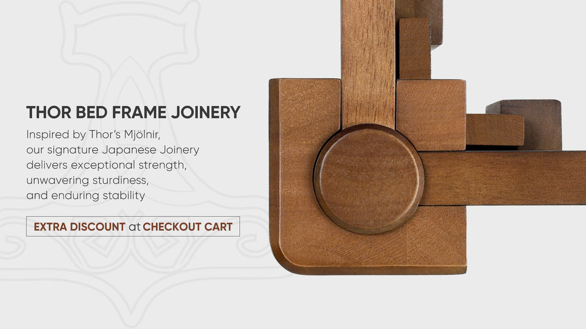 - Signature Japanese joinery, our signature enhancement: Thor bed frame is thoughtfully designed with one-of-a-kind Japanese joinery style inspired by Thor's Mjölnir, making it more convenient and time-saving for you. Just a slight tap and your bed will stand sturdy without shaking.