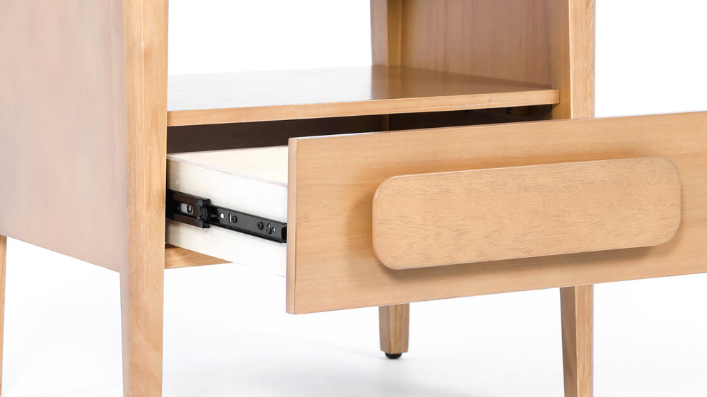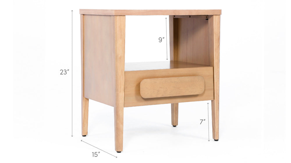 Where Mid-Century meets Japandi. The Thor Wood Nightstand offers a sleek storage solution for compact spaces and minimalist retreats alike