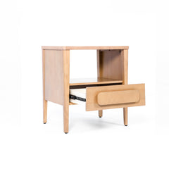 Where Mid-Century meets Japandi. The Thor Wood Nightstand offers a sleek storage solution for compact spaces and minimalist retreats alike